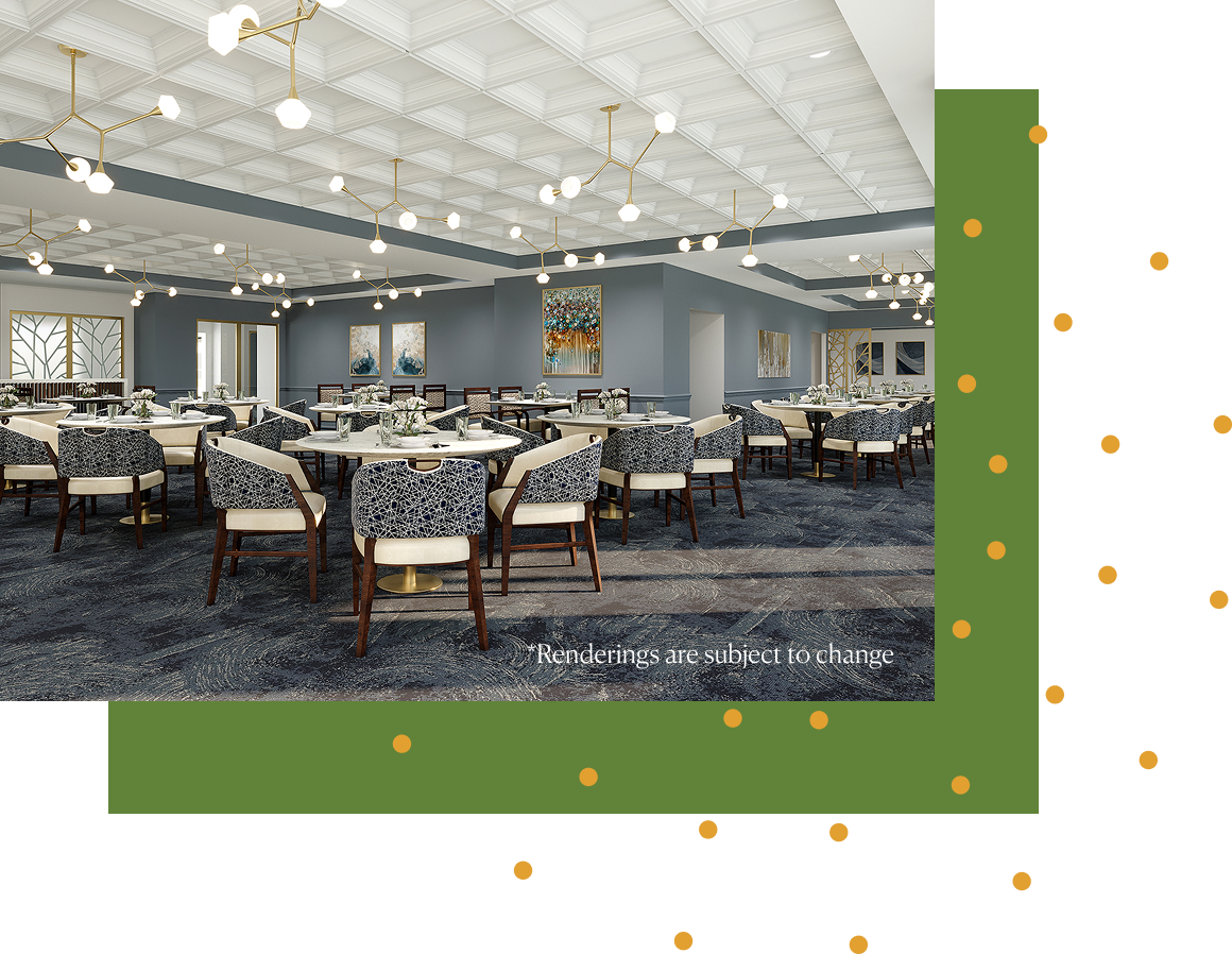 Exciting changes are coming to Hearthwood! A $14 million renovation, to be completed in 2027, will spark fresh energy throughout our community, transforming the lobby, living room, bistro, dining room, theatre, and more into even more glowing and welcoming spaces.